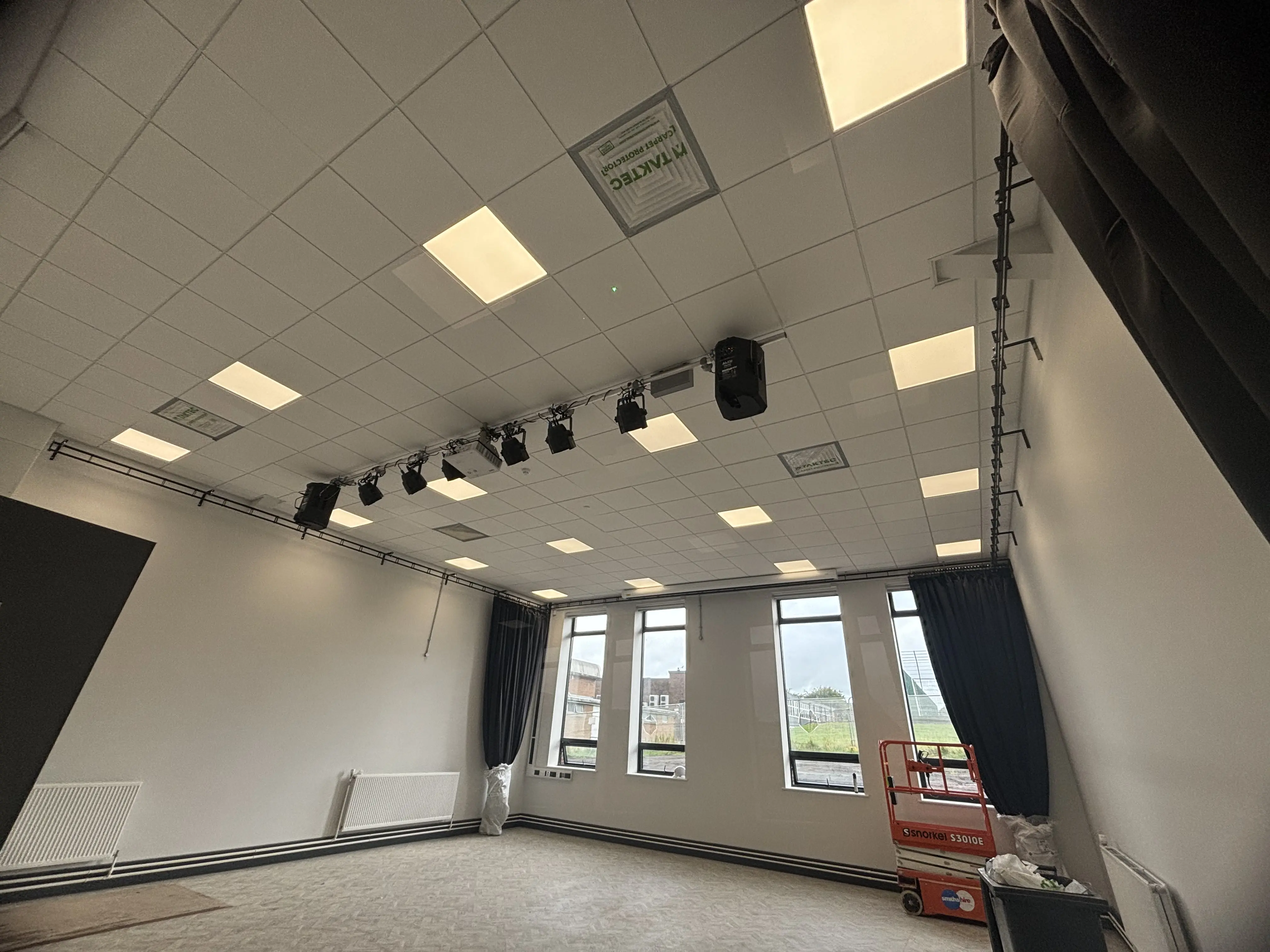 The project required a blend of standard educational infrastructure and specialised systems tailored for a performance space. We focused on creating a safe, efficient, and visually appealing environment while adhering to strict industry and educational standards.